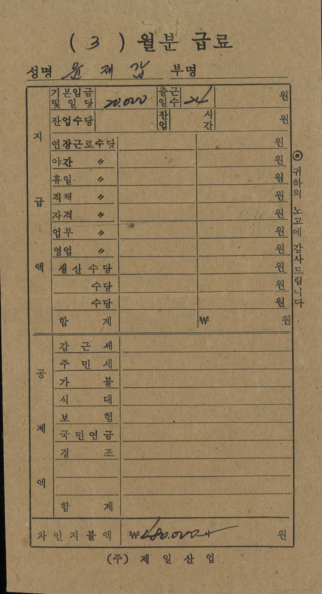 3월분 급료 봉투