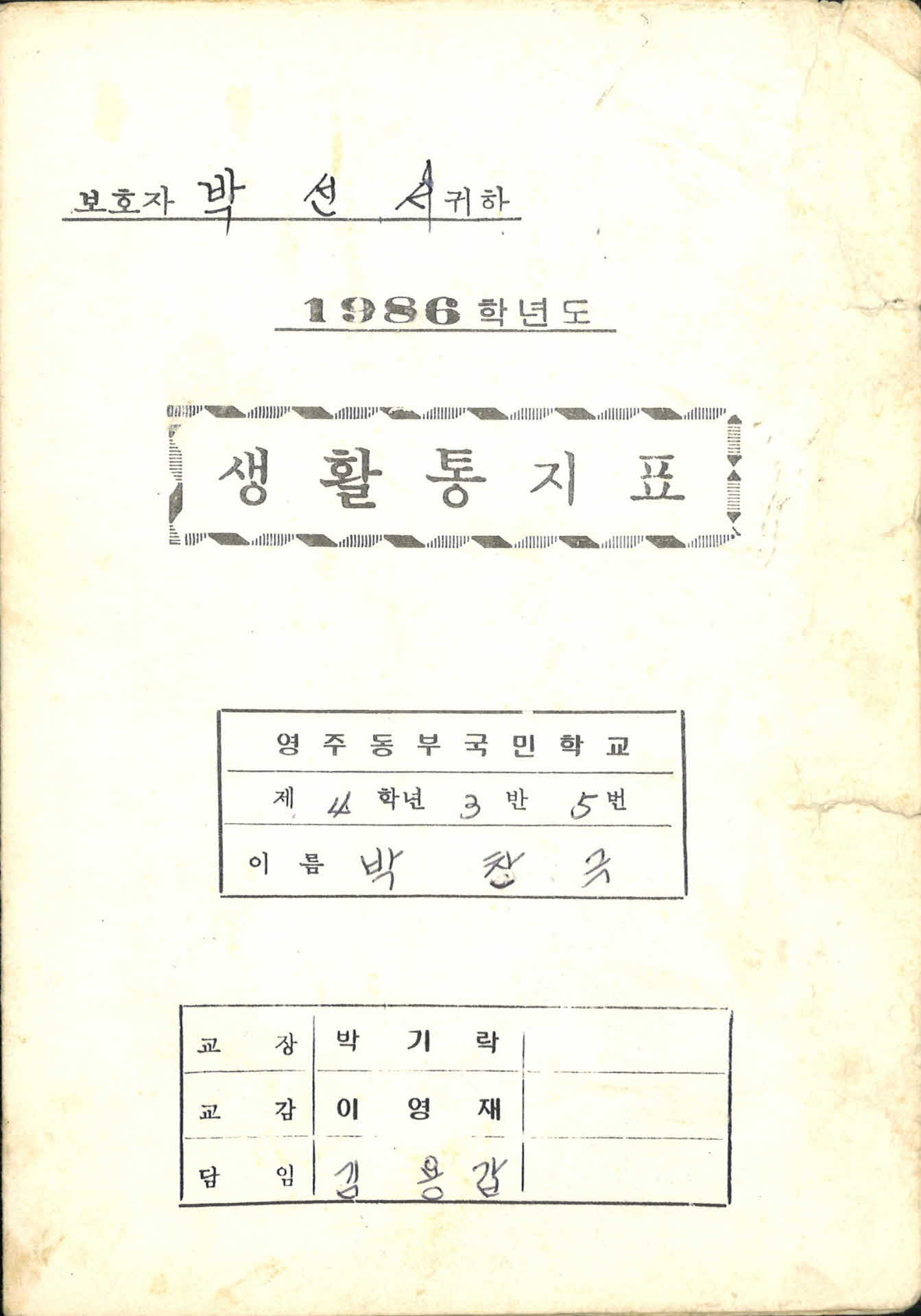 1986년 영주동부국민학교 생활통지표