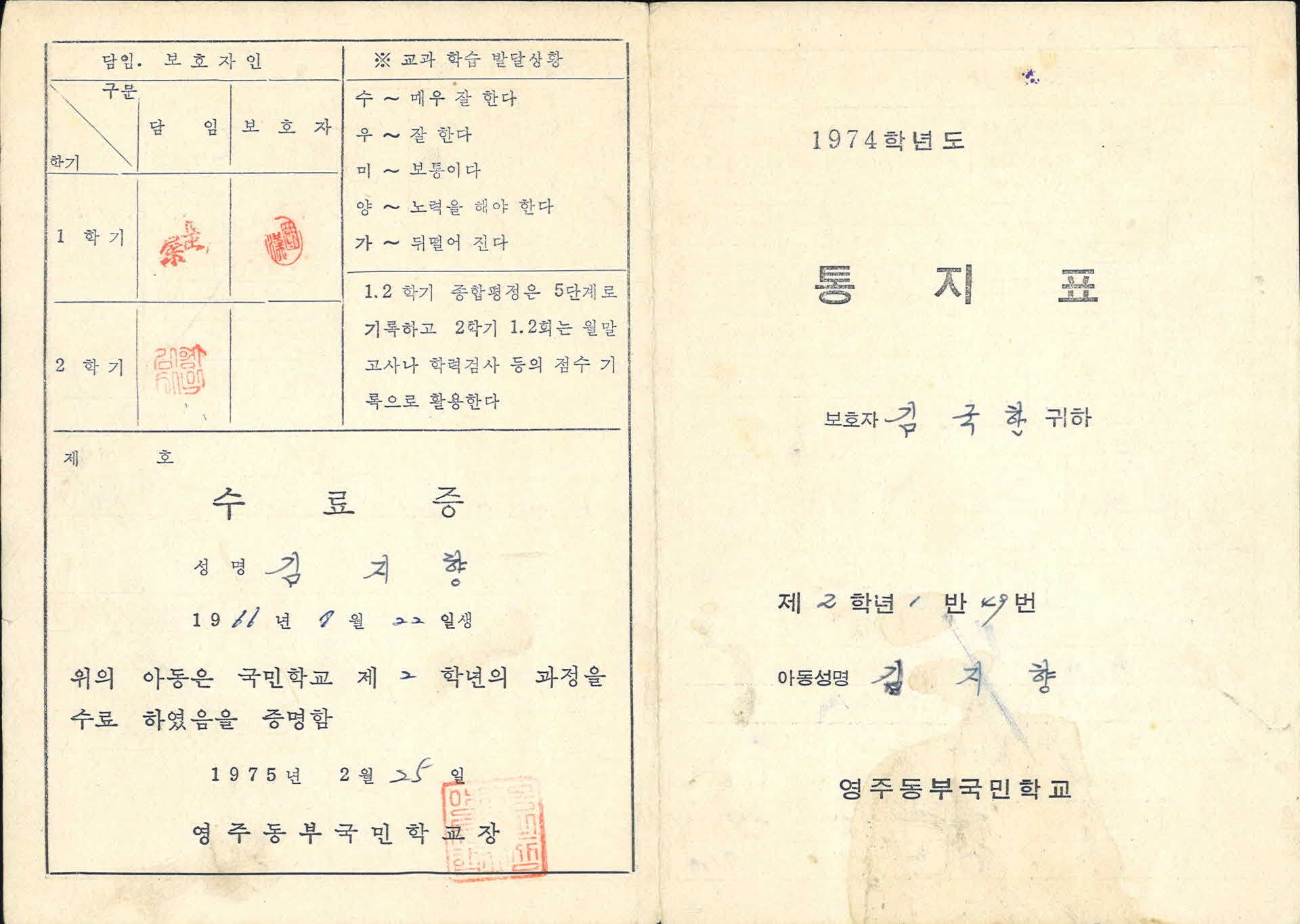 1974년 영주동부국민학교 통지표 > 영주, 영주사람