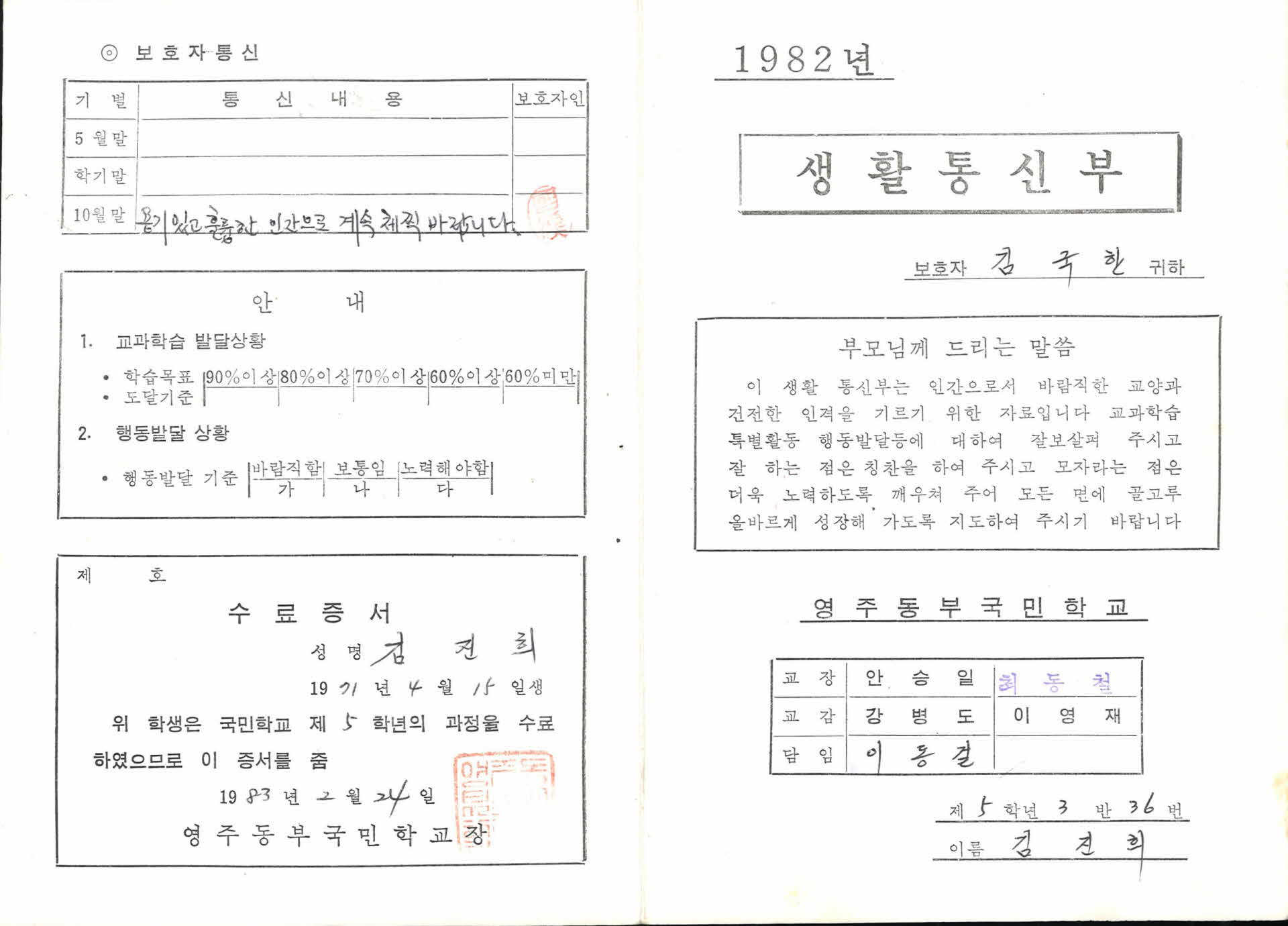 | 기록물명 | 1982년 영주동부국민학교 생활통신부 | ||