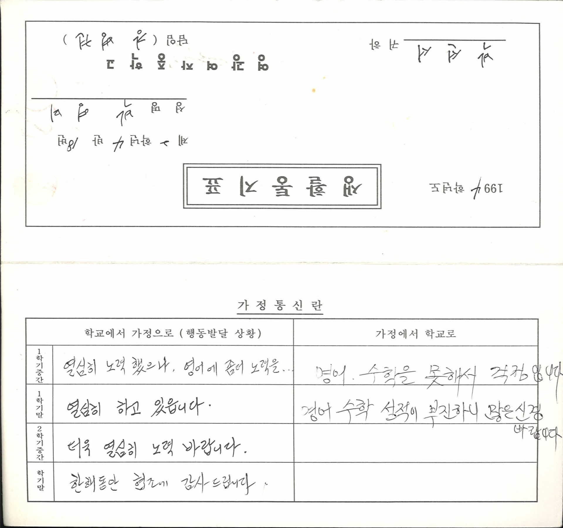 1994년 영광여자중학교 생활통지표