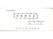1982년 영주여자고등학교 생활통지표