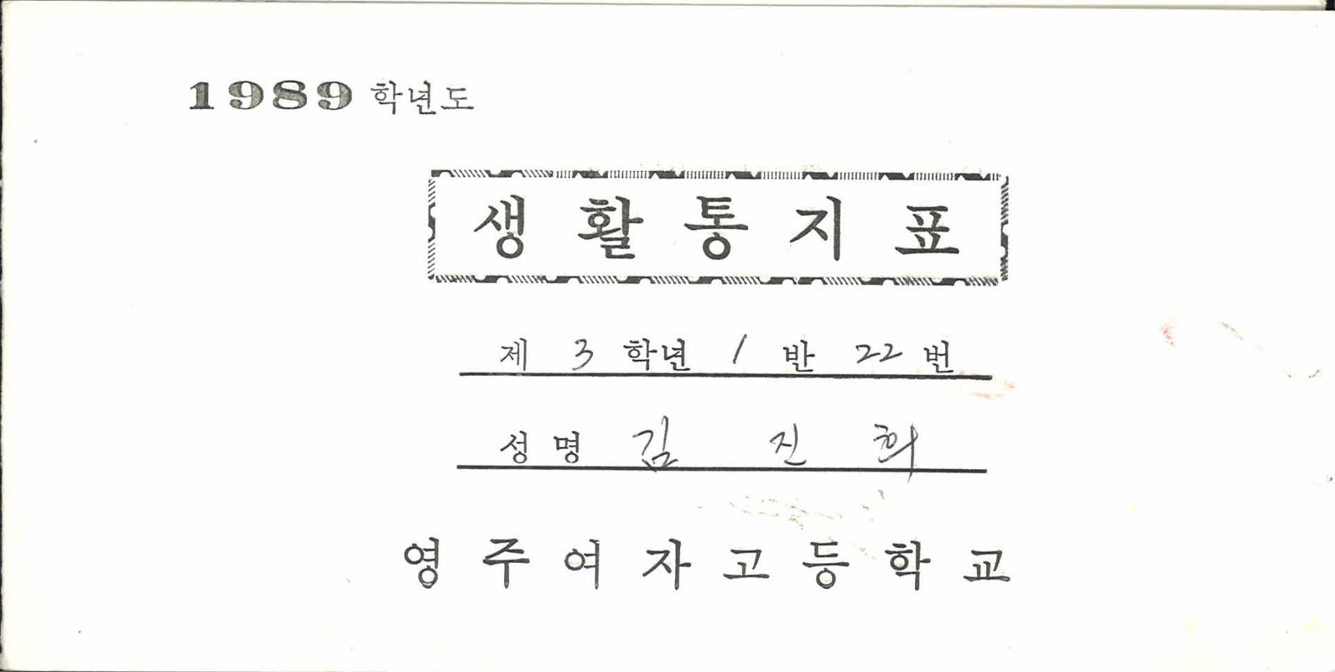 • 1989년 영주여자고등학교 생활통지표