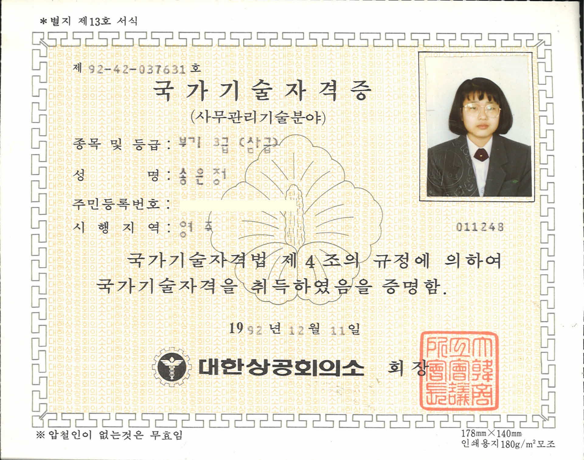 | 기록물명 | 부기 3급 국가기술자격증 | ||