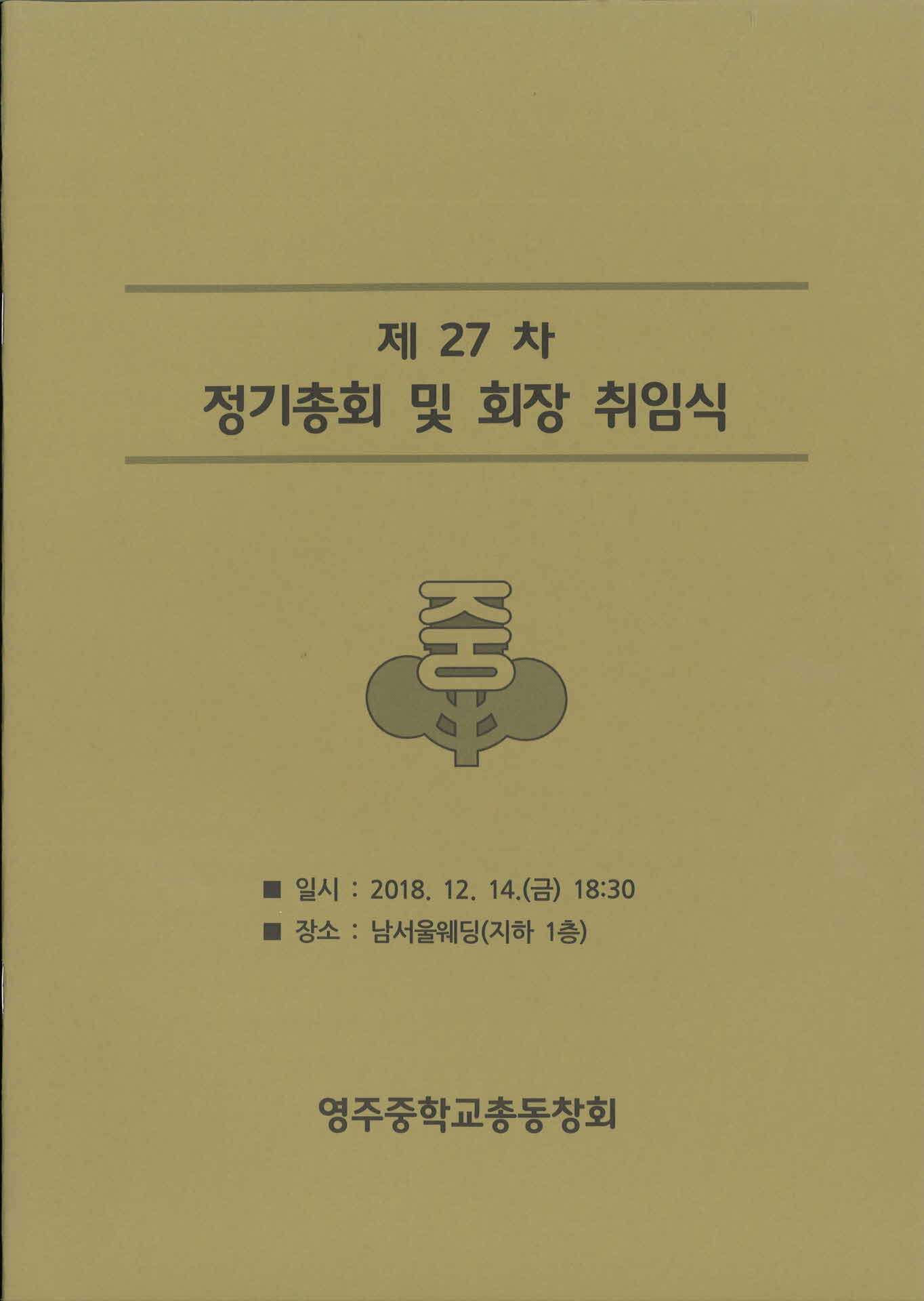 | 기록물명 | 영주중학교 총동창회 27차 정기총회 및 회장단 이취임식 | ||