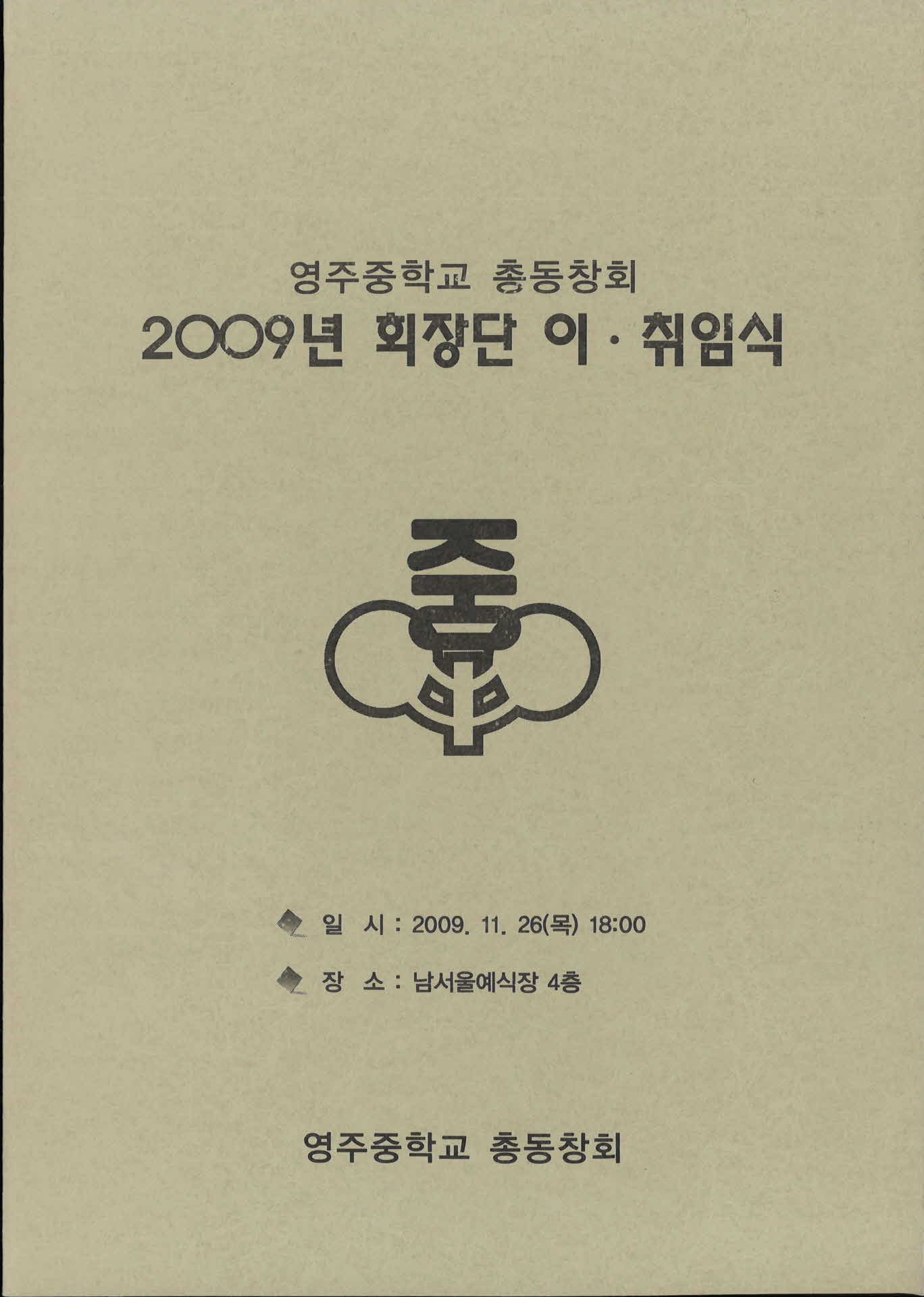 | 기록물명 | 영주중학교 총동창회 회장단 이·취임식 초청 팜플렛 | ||