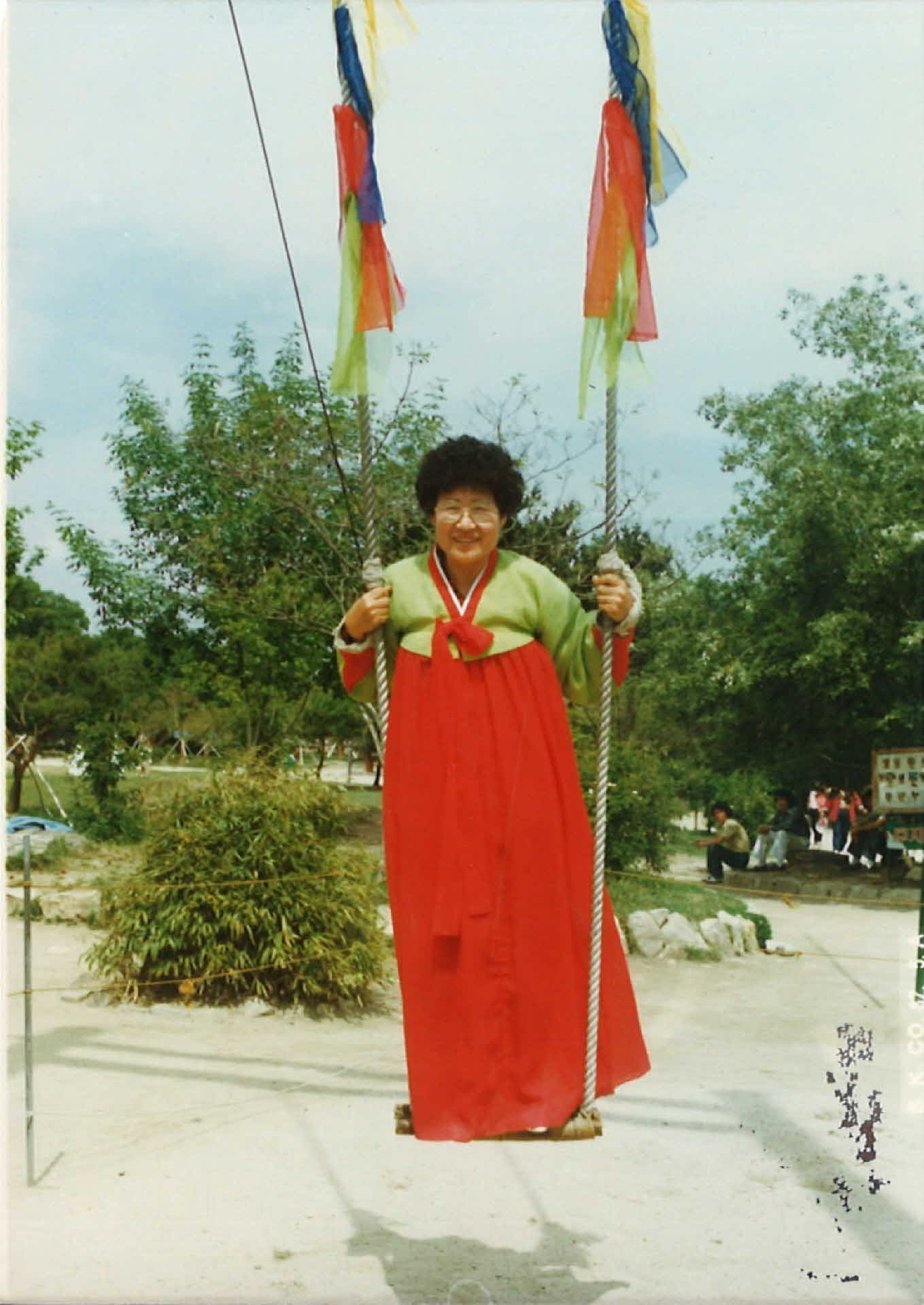 한복 입고 그네 타는 사진