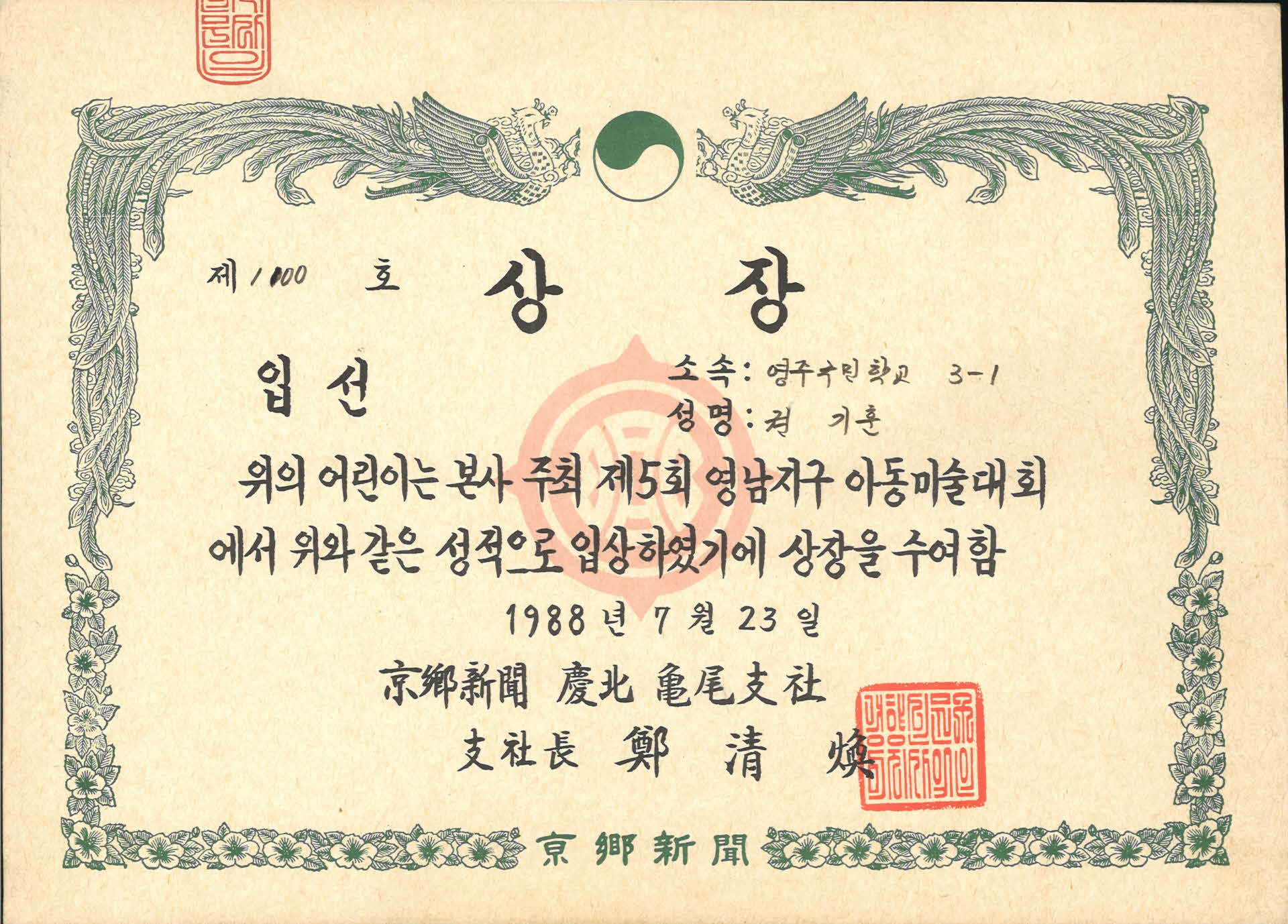 | 기록물명 | 영주국민학교 아동미술대회 입선 상장 | ||