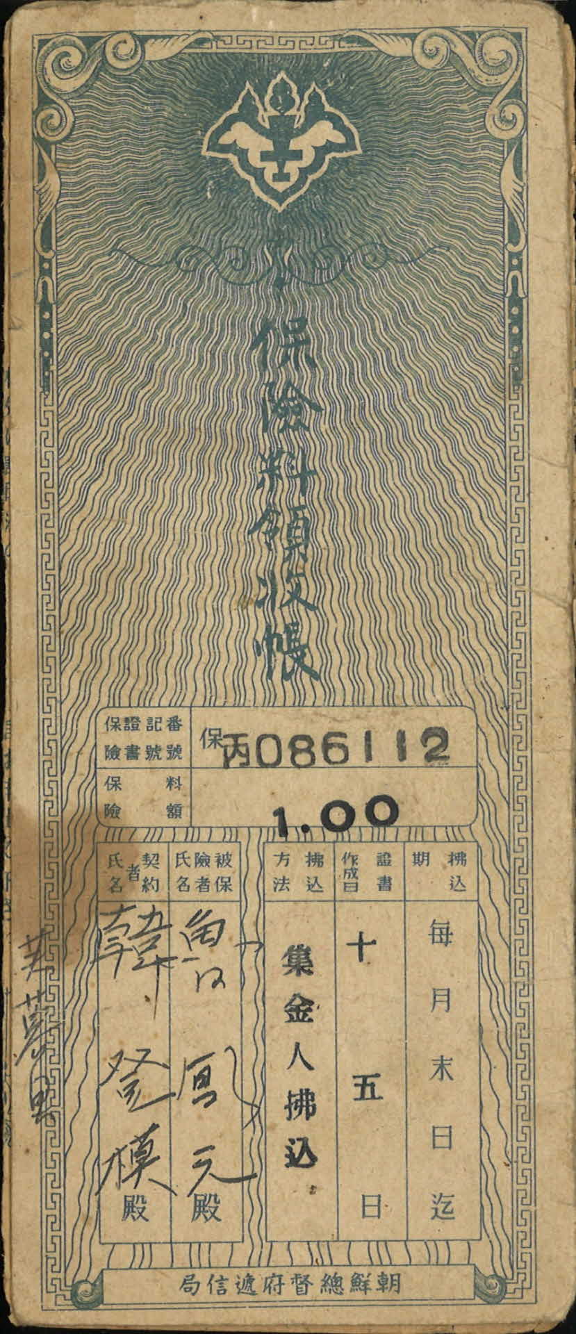 | 기록물명 | 보험료 영수장2 | ||