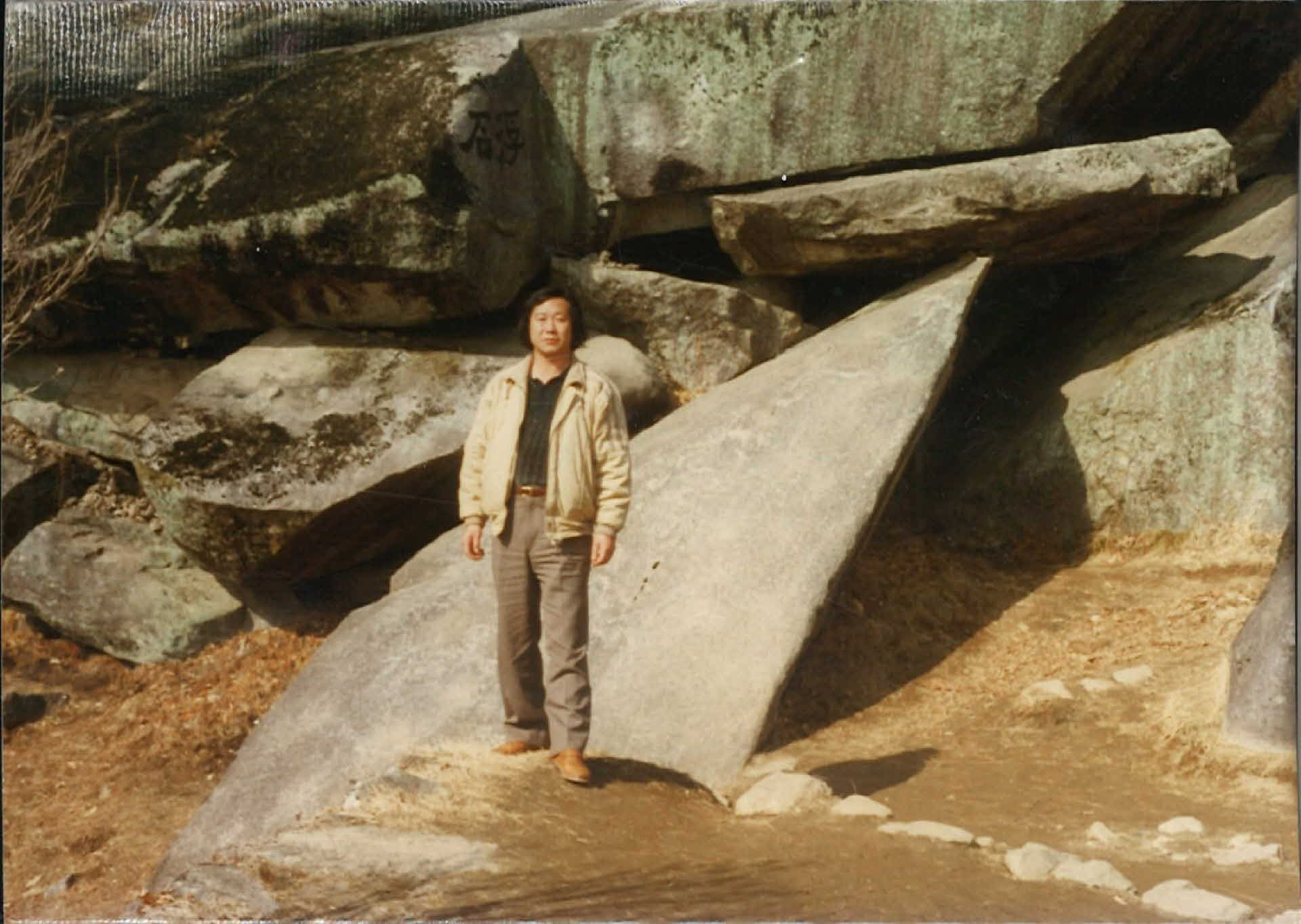 기록물명 사진-부석사 부석 돌 앞에서 찍은 한사람