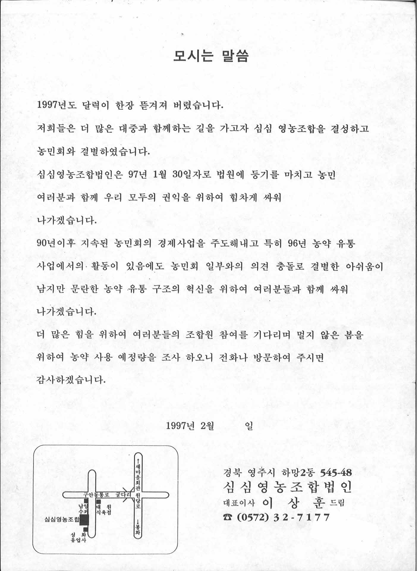 심심영농조합법인설립초청장