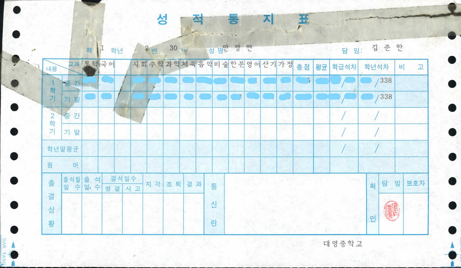 대영중학교 성적통지표
