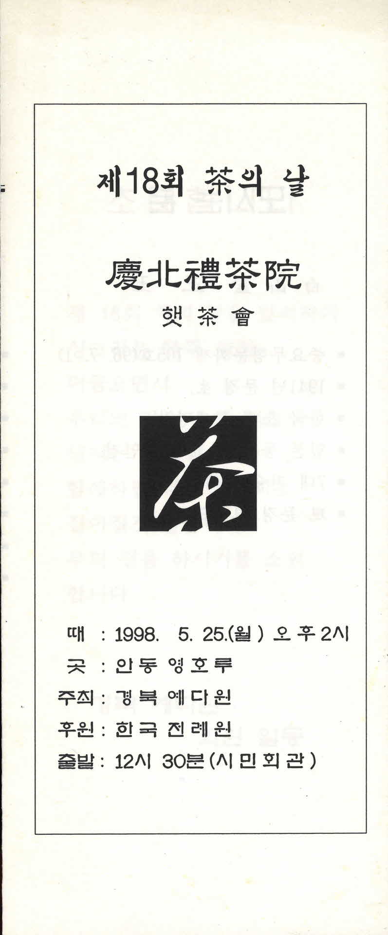 | 기록물명 | 제18회차의날 경북예다원 햇차회 팜프렛(흰색) | ||
