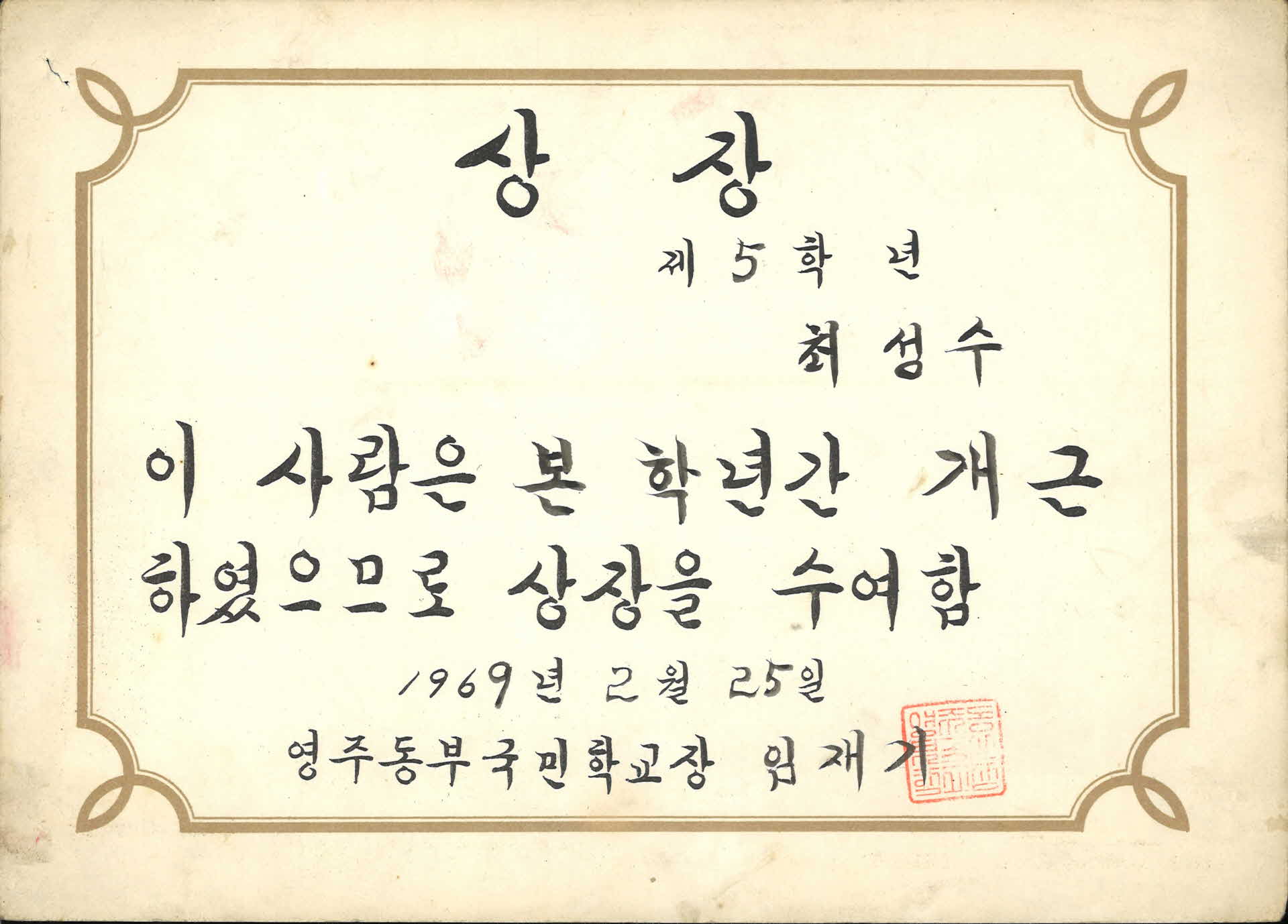 영주동부국민학교 1년 개근 상장 > 영주, 영주사람