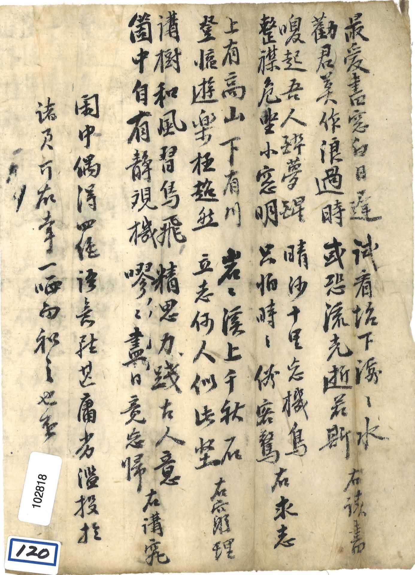 | 기록물명 | 발신인 미상. 입지를 굳건히 하고 배움에 집중해야 한다는 취지의 시. | ||