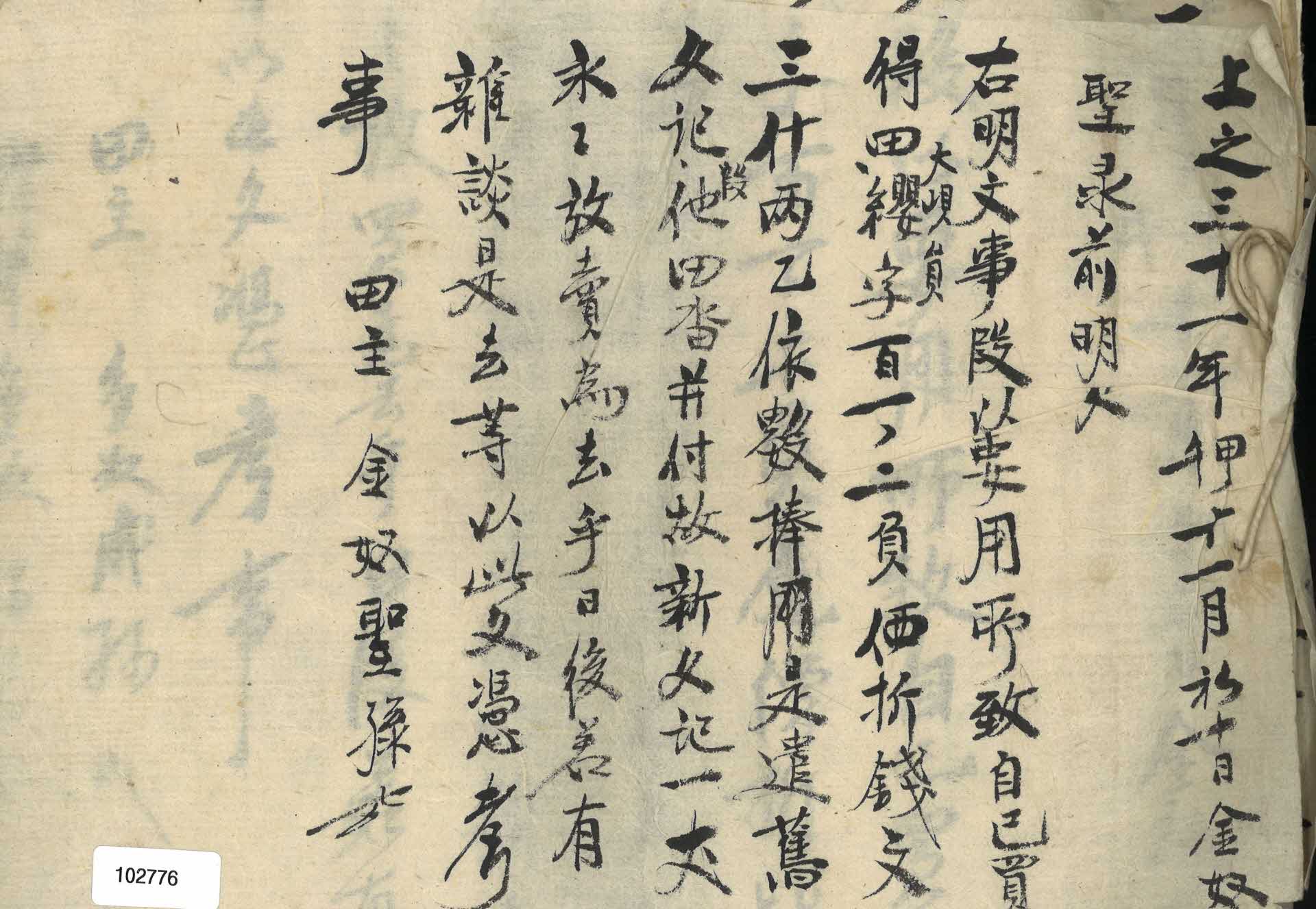 | 기록물명 | 大峴員 纓 字 토지 매도 증명서. 매도인은 종 金聖孫이다. | ||
