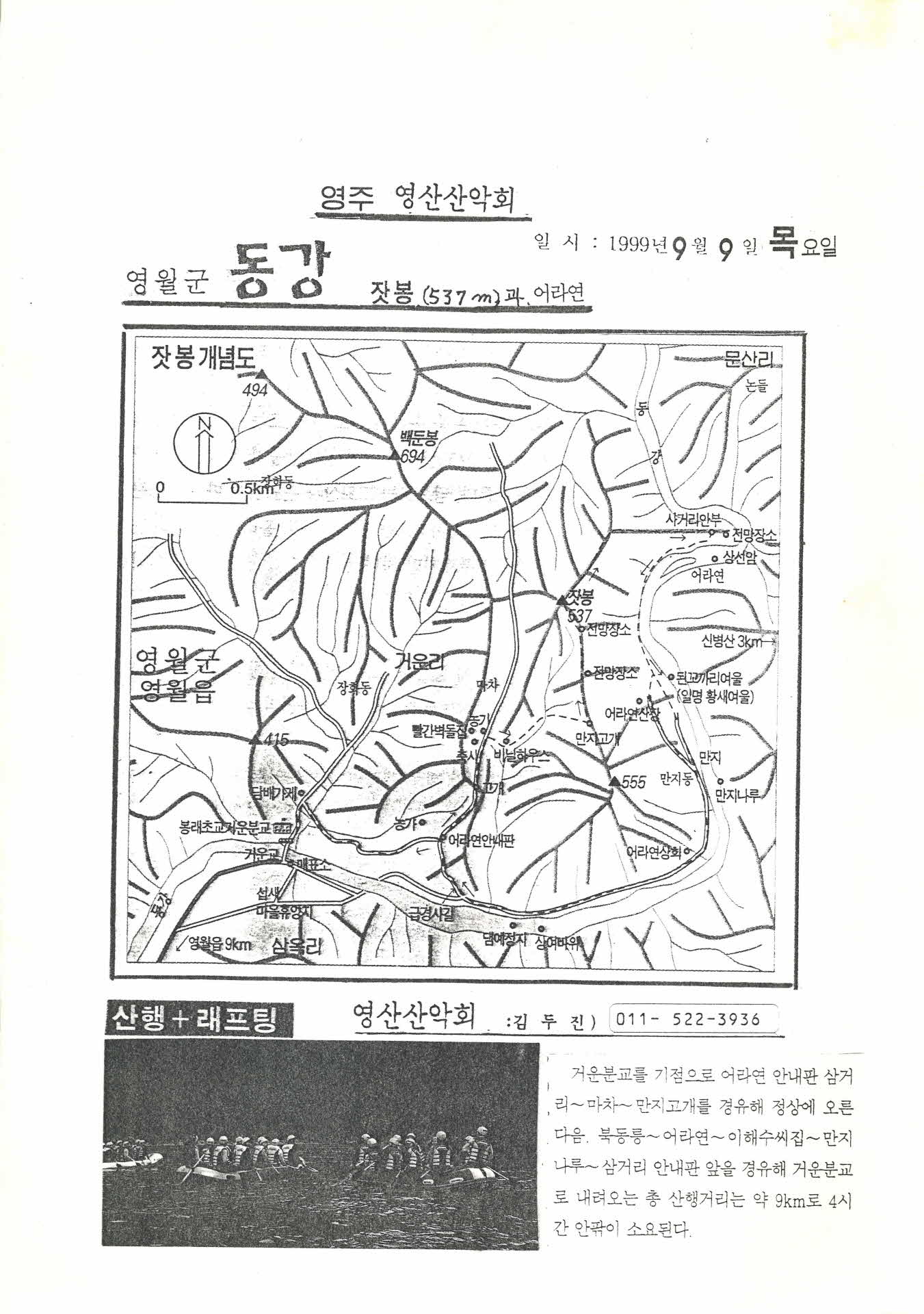 | 기록물명 | 영산산악회 영월 동강 잣봉 산행계획 | ||