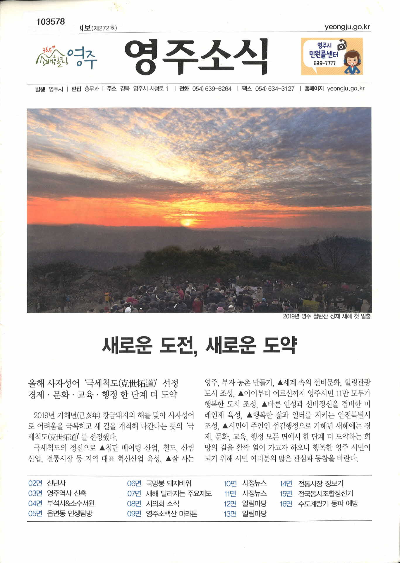 * 본 홈페이지에 게시된 게시물의 저작권은 영주문화원에 있으며, 이를 위반시 정보통신망법에 의해 처벌됨을 유념하시기 바랍니다.