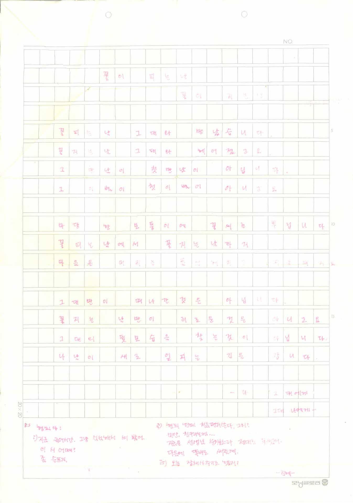 | 기록물명 | 쪽지(꽃이 피는 날 꽃이 지는 날) | ||