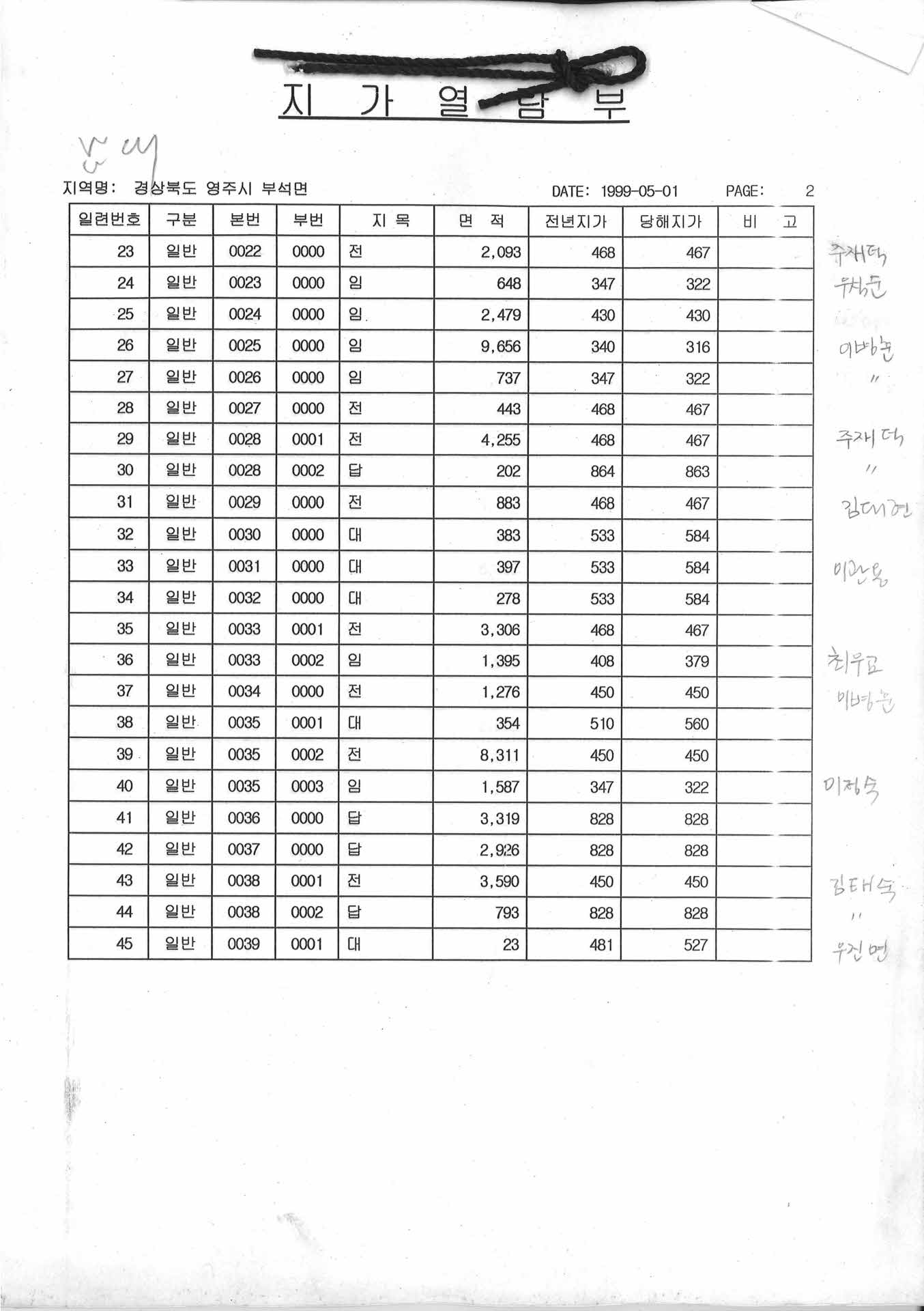 | 기록물명 | 부석면 지가열람부 2-40 | ||