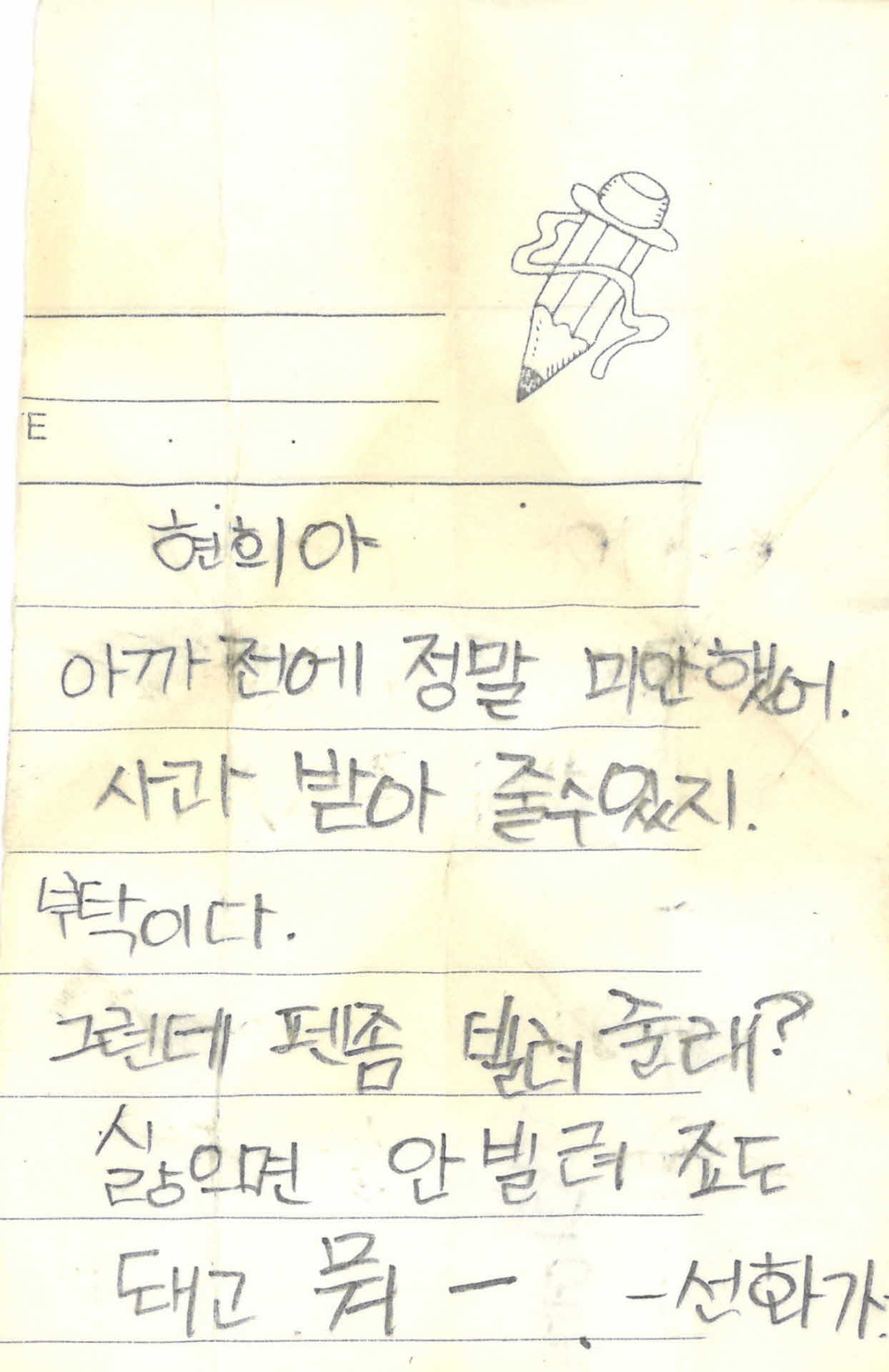 | 기록물명 | 쪽지(아까전에 정말 미안했어) | ||