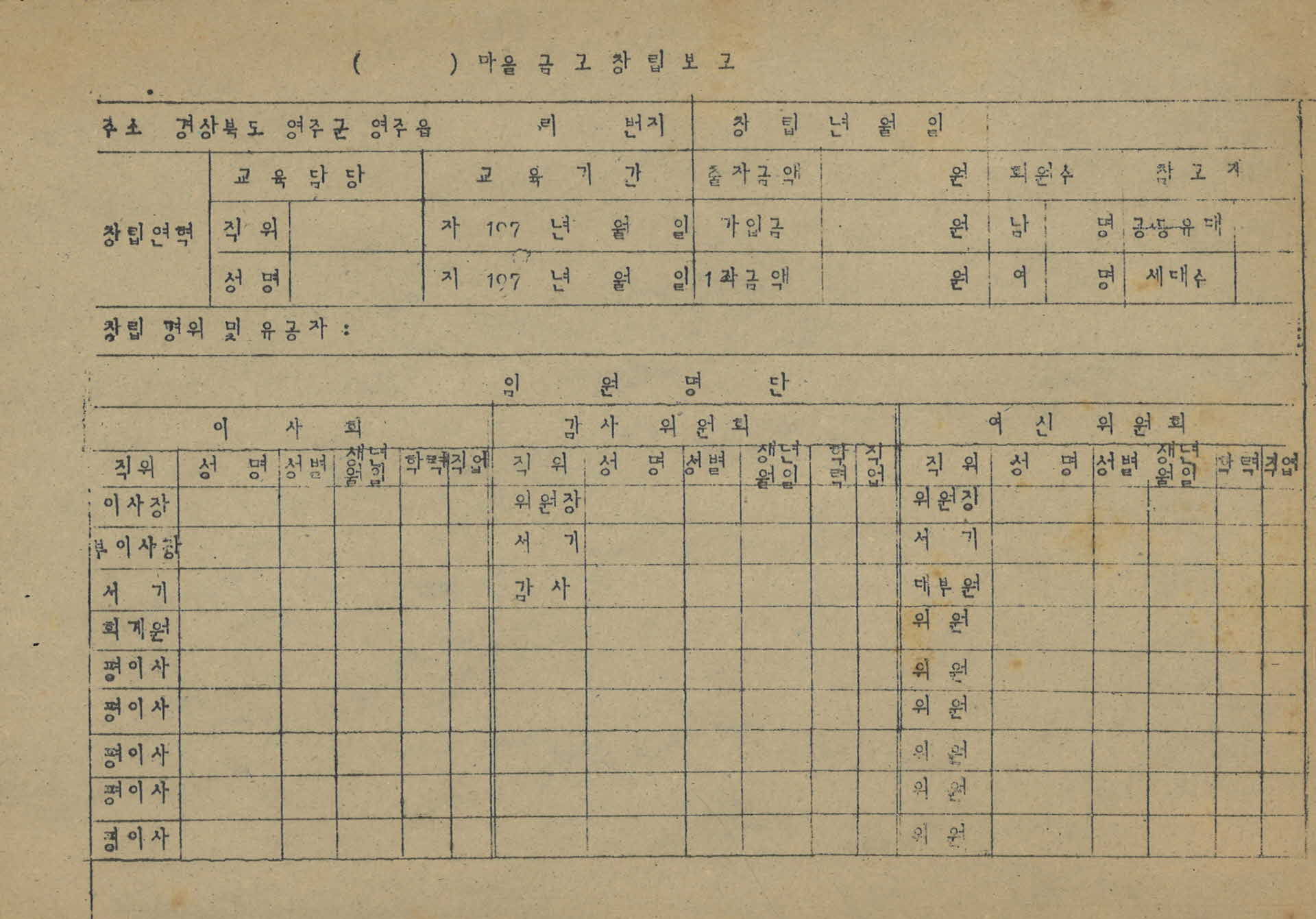 | 기록물명 | 마을금고 창립보고 서식 | ||