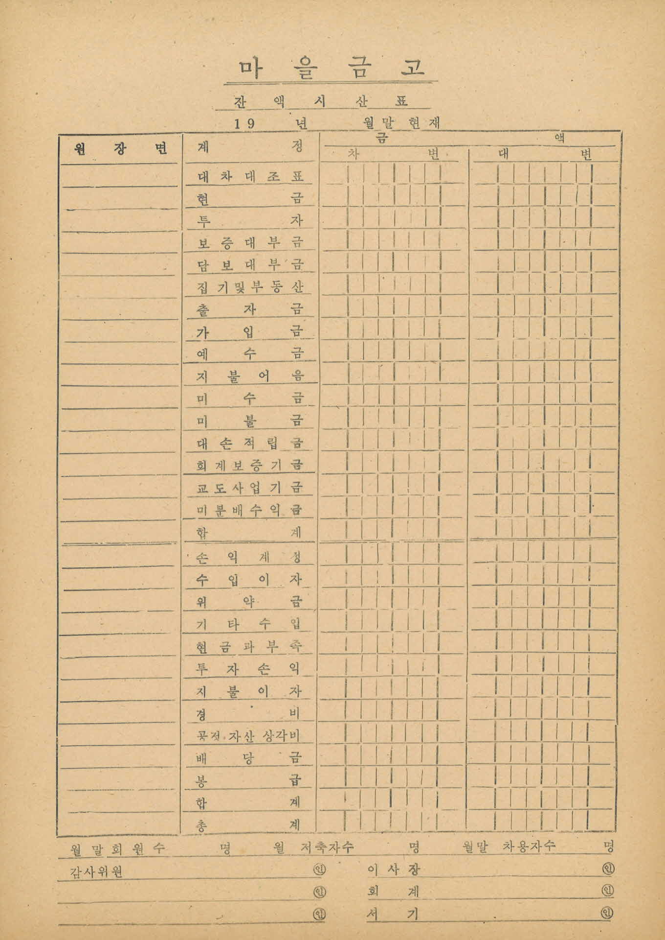 마을금고 잔액시산표 서식 17매
