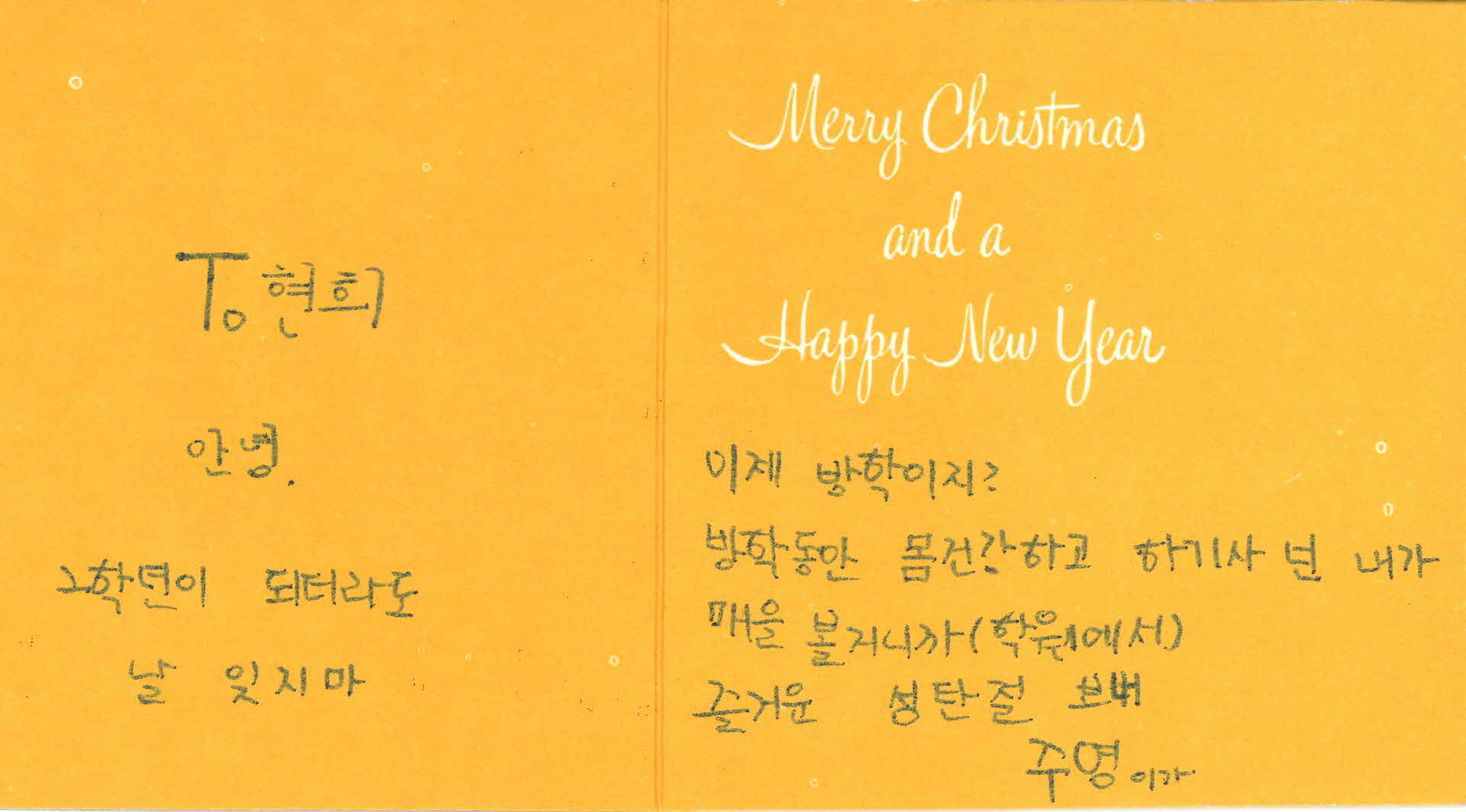 | 기록물명 | 성탄절 카드(봉함, 주영이가 현희에게) | ||
