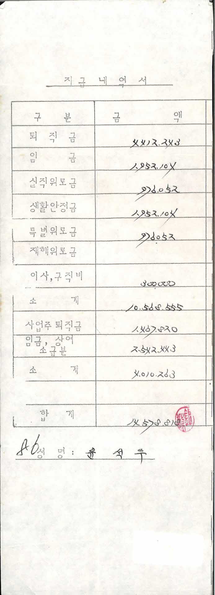 | 기록물명 | 퇴직금 지급내역서 | ||