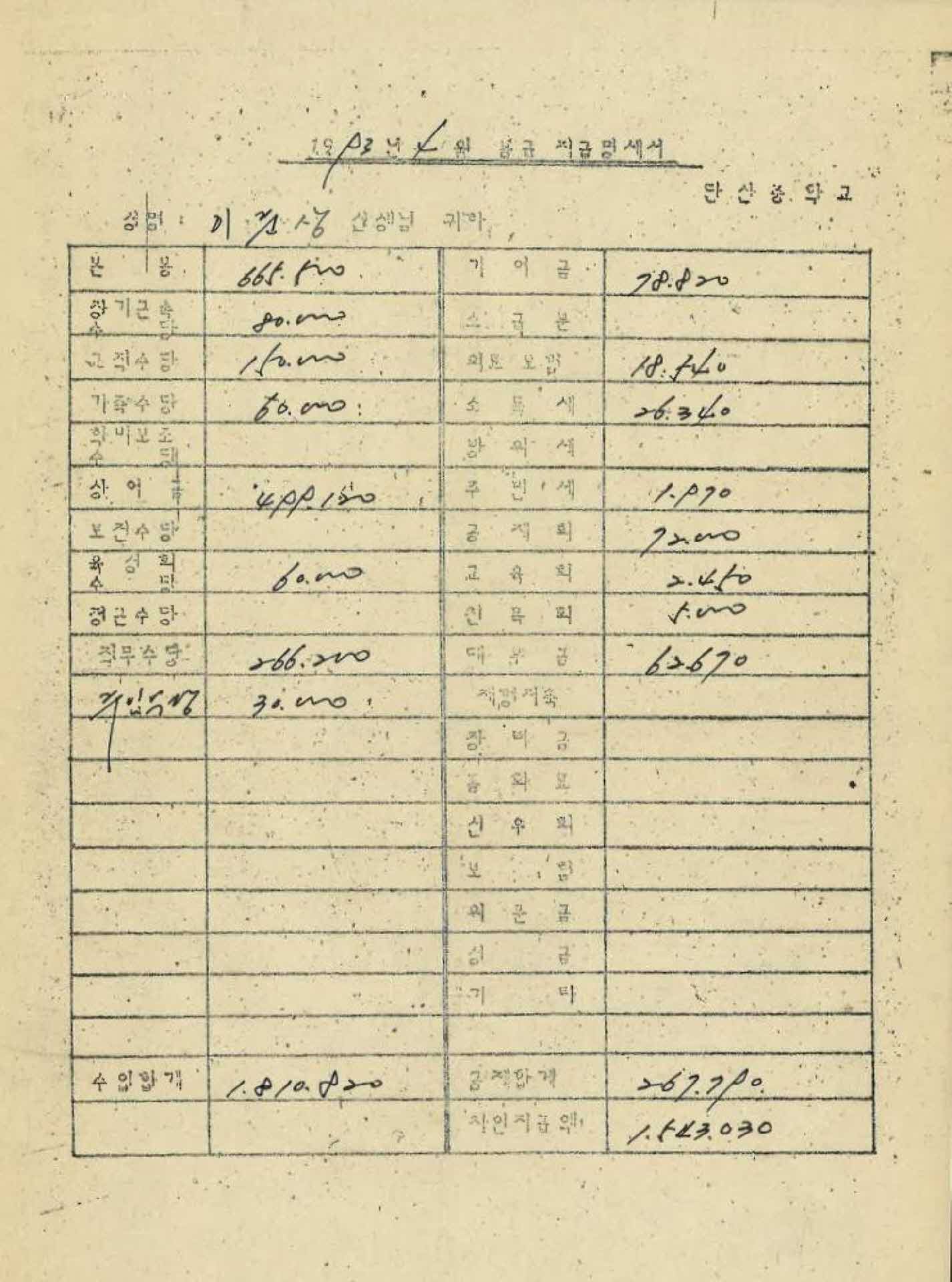 | 기록물명 | 1993년 4월 교사 봉급계산서 | ||