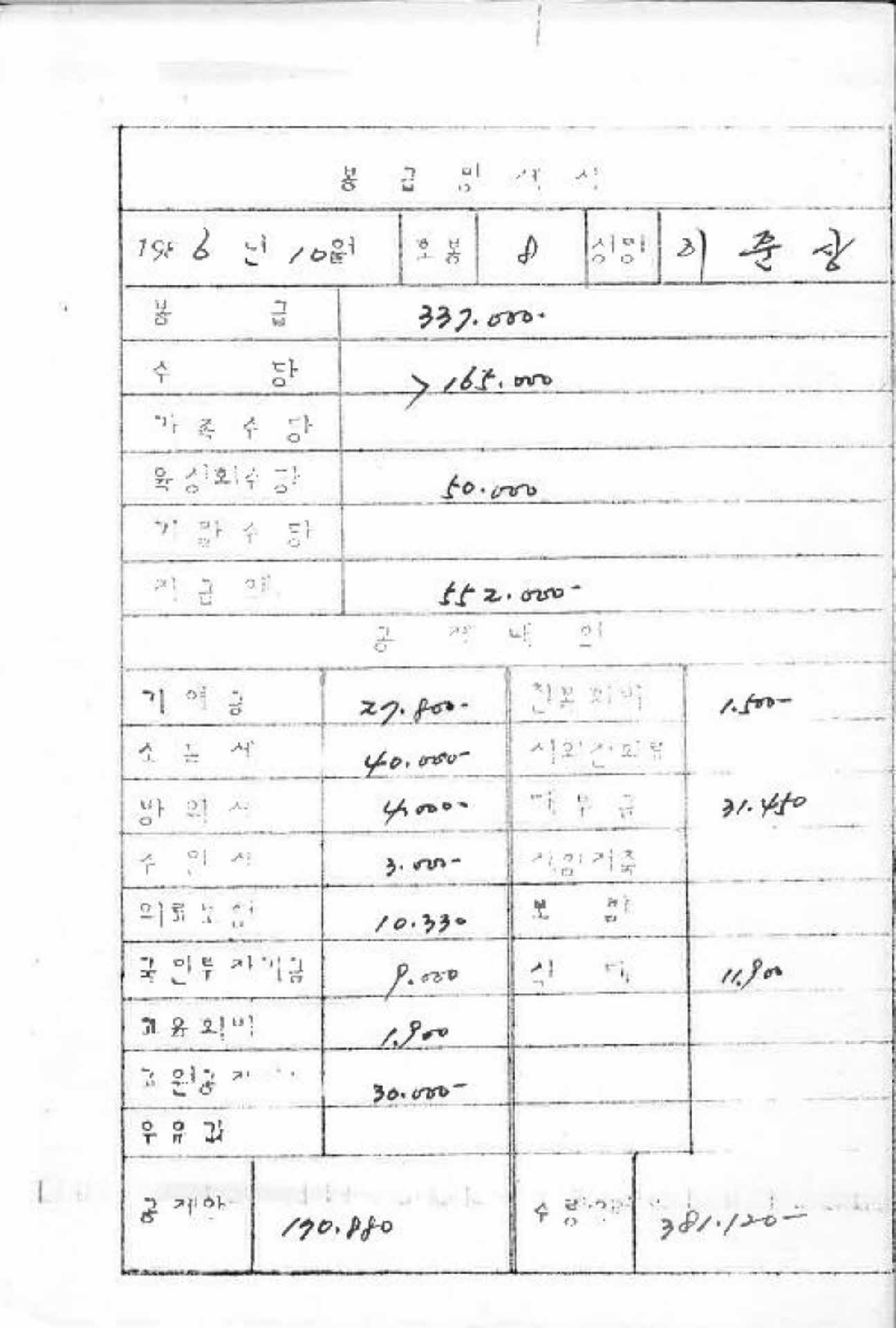 | 기록물명 | 1986년 10월 교사 봉급계산서 | ||