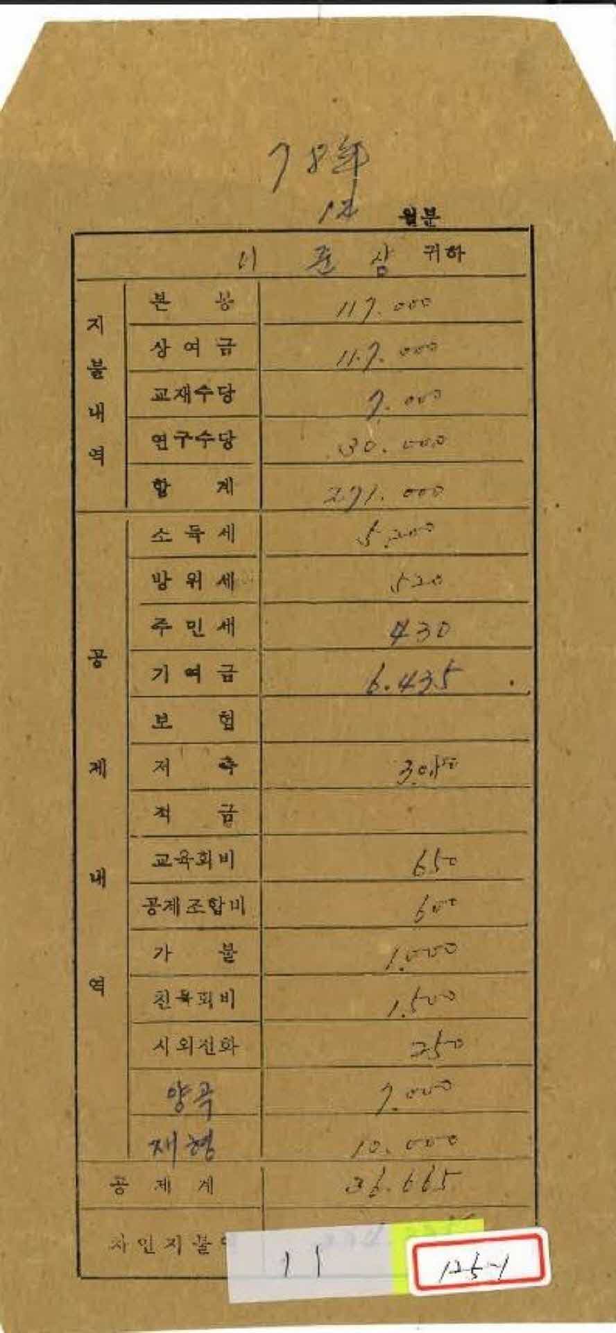 | 기록물명 | 1978년 12월 교사 봉급계산서 봉투 | ||