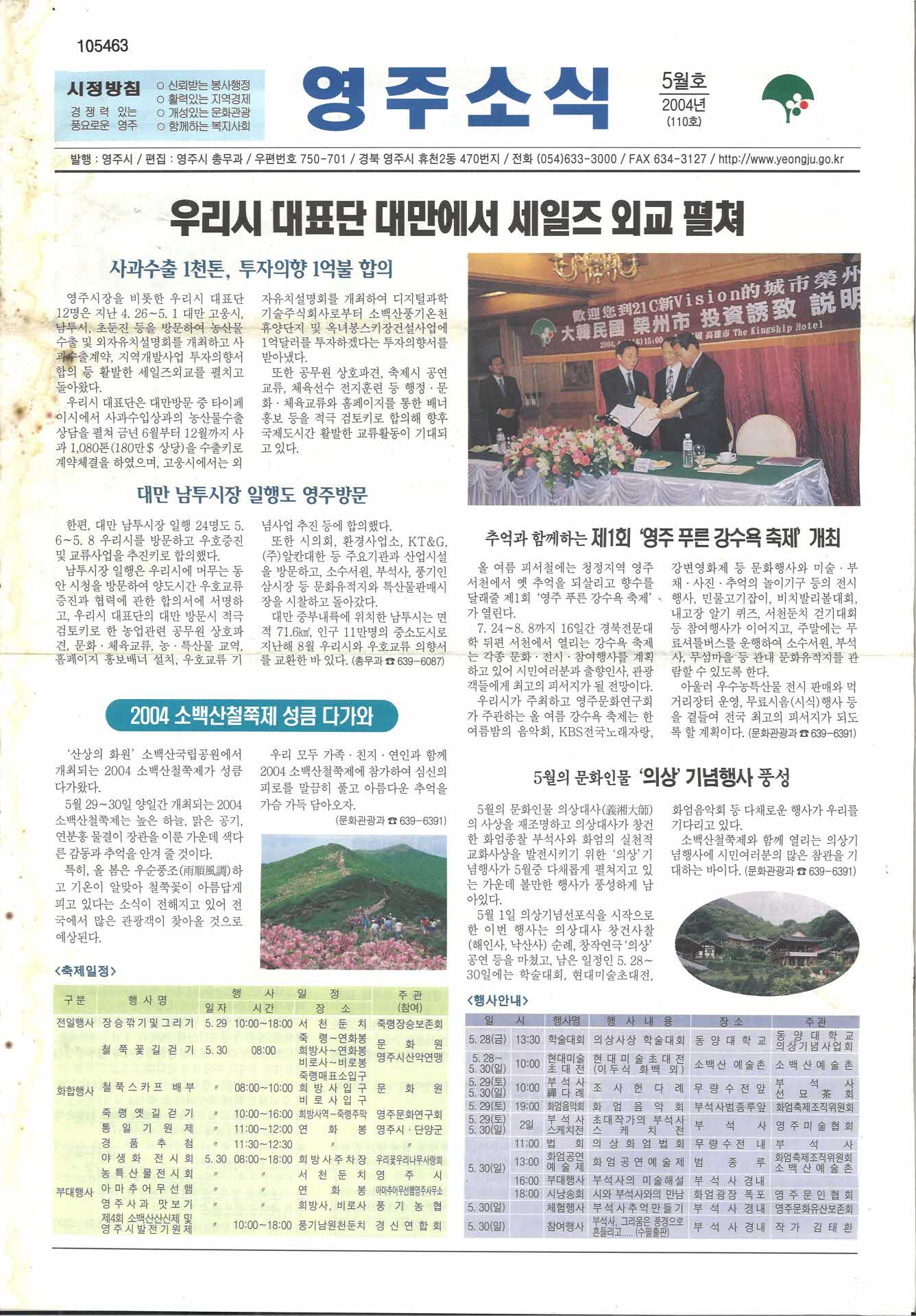 | 기록물명 | 영주소식 2004년 5월호(110호) | ||