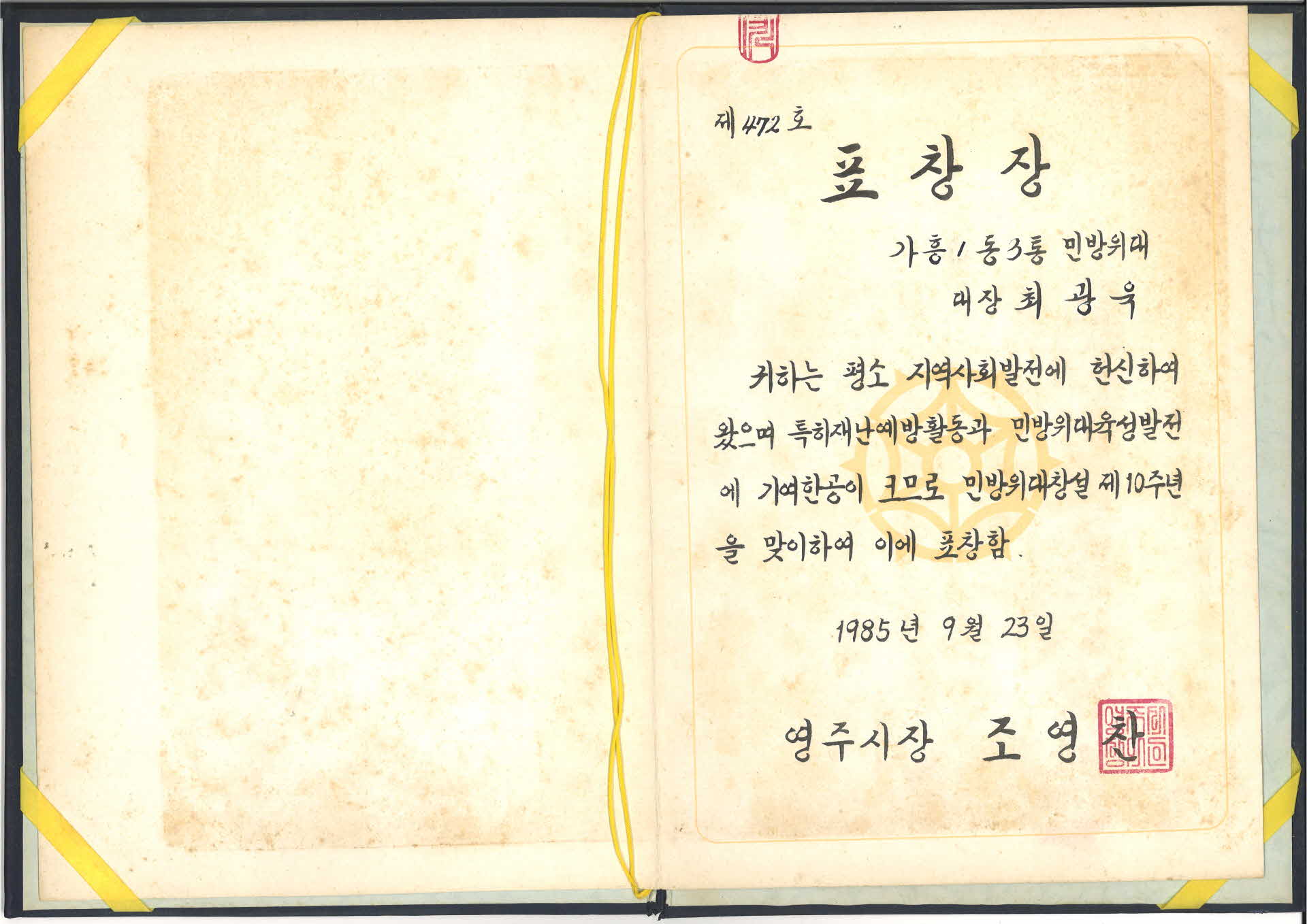 | 기록물명 | 표창장 | ||