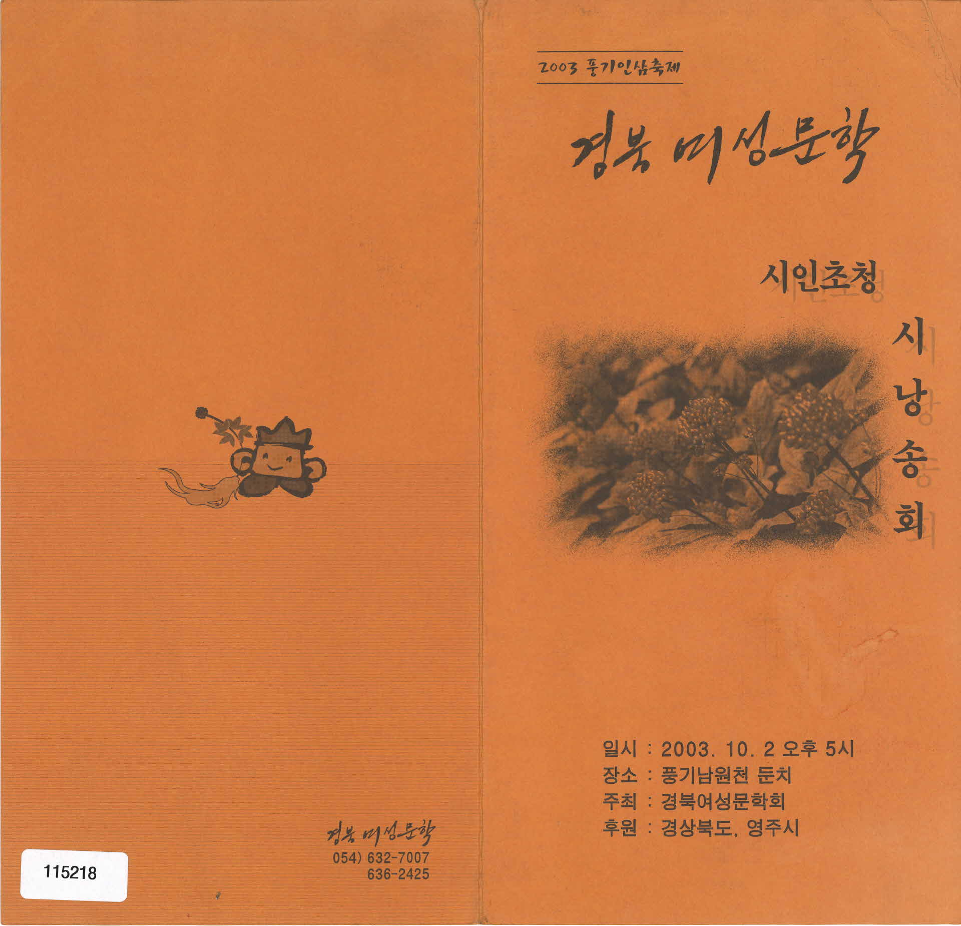 | 기록물명 | 경북여성문학 시인초청 시낭송회 초대 팜프렛 | ||