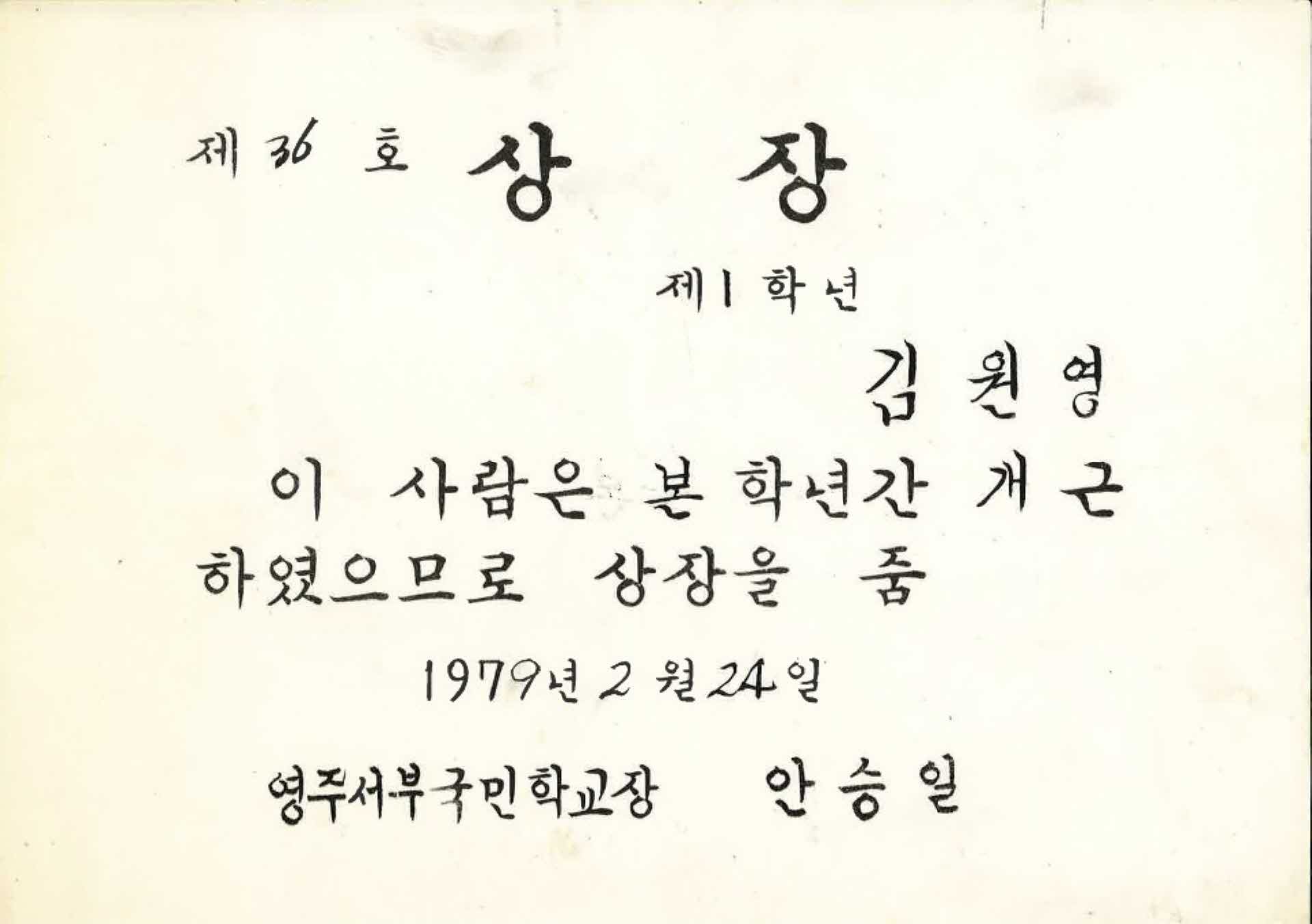 | 기록물명 | 영주서부국민학교 1년 개근상 | ||