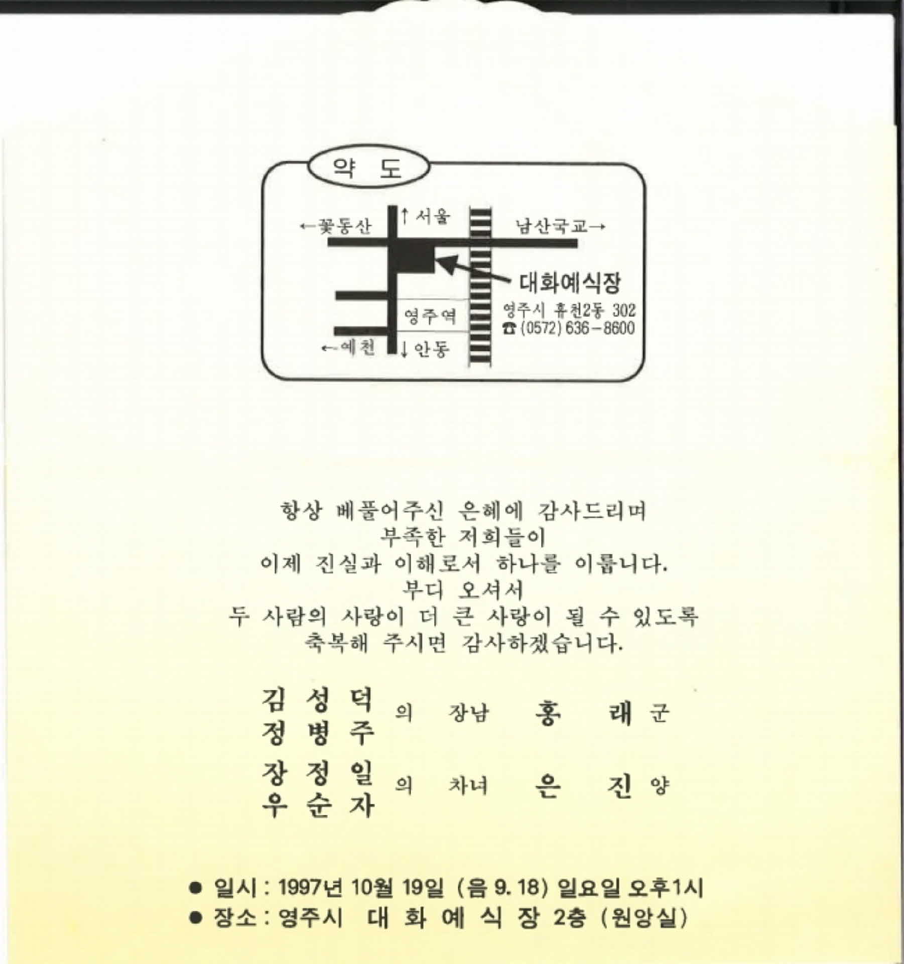 | 기록물명 | 영주 대화예식장 청첩장 | ||