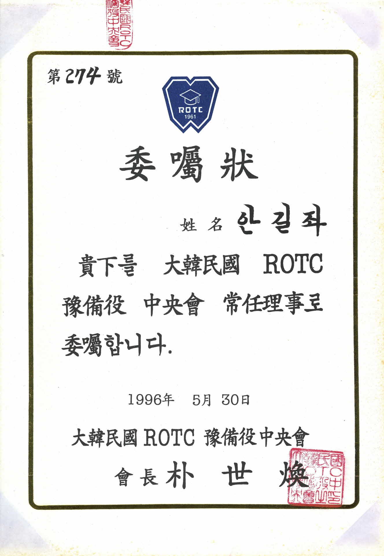 • 대한민국 ROTC 예비역 중앙회 상임이사 위임장